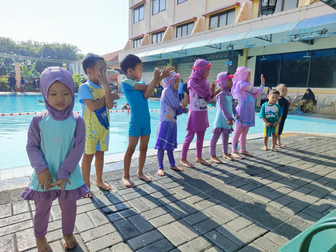 Surakarta — Suasana ceria dan penuh semangat tampak di kolam renang pada kegiatan ekstrakurikuler berenang yang diikuti oleh siswa-siswi KB-TK Dirasatul Aulad Jam’atul Ikhwan Surakarta pada hari Jumat pagi.